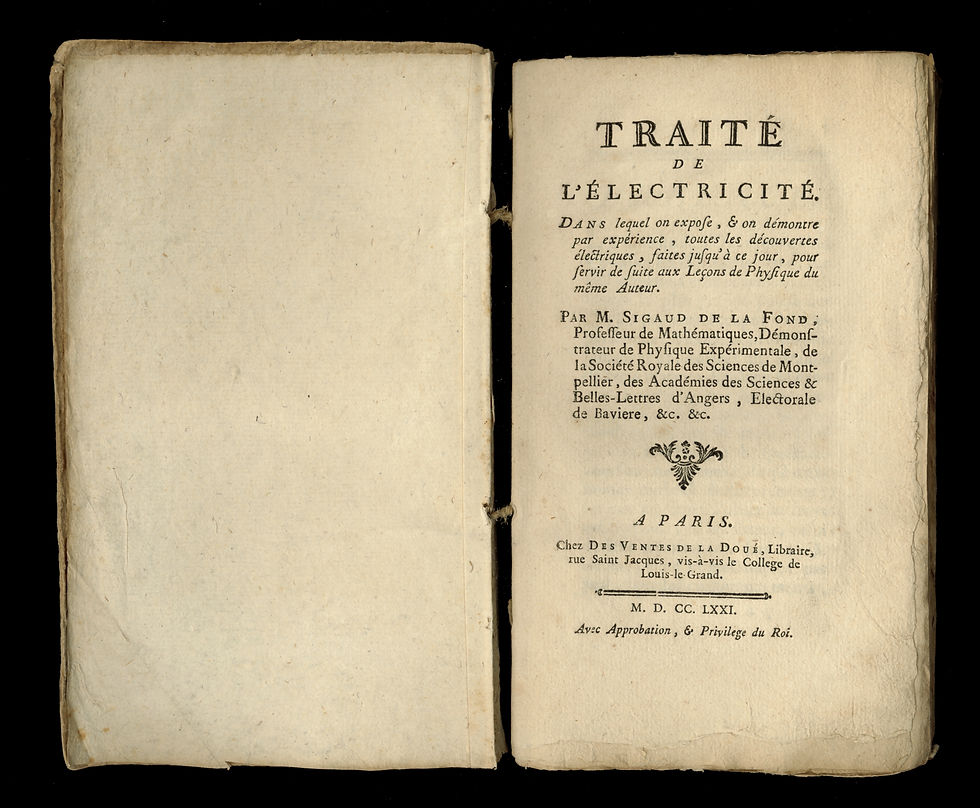 Traité de l'électricité (1771) par Sigaud de La Fond (12 pl.). Edition originale